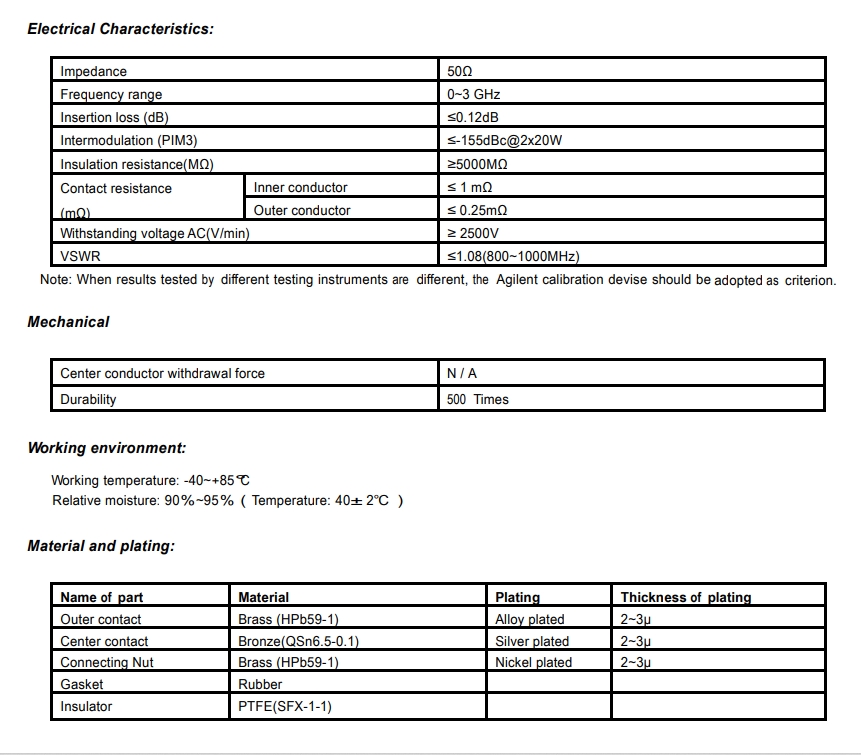 Los conectores N disponibles están diseñados y fabricados con revestimiento de latón, chapado en Ni/Au, con Aislante de teflón, su conductor interior es de bronce, chapado en Au.